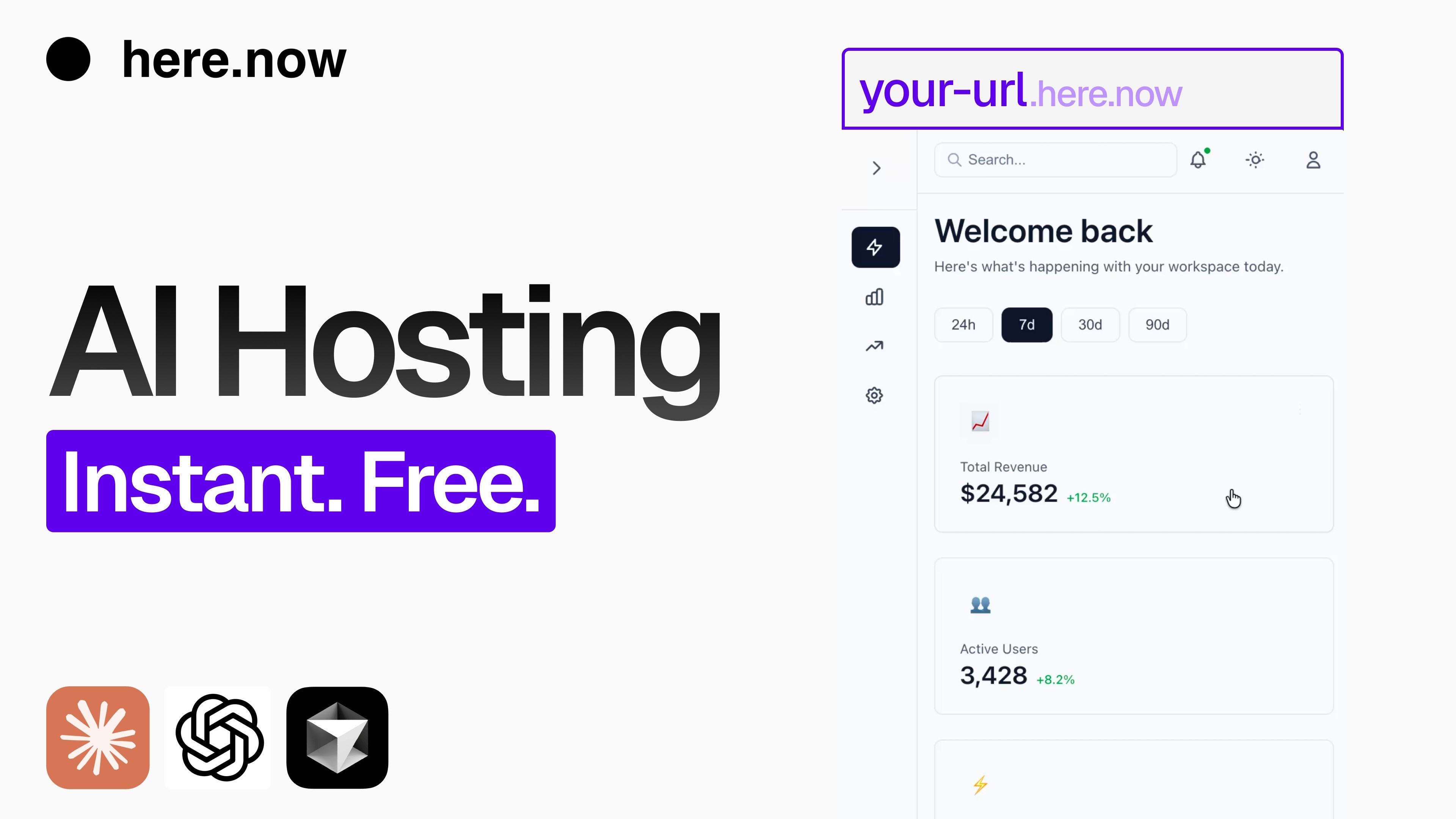 here.now is instant, free web hosting built specifically for AI agents. The pitch is simple: tell your agent to publish something, and a live URL appears in seconds. No account required to try it. No build step. No config files. No repo to connect.